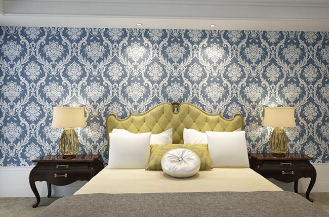 一、無紡布墻紙進行正確的裁剪,按照墻面上下的高度和左右的寬度作對比,各預留五厘米進行裁剪。