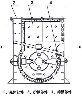 箱式破碎機主要由:箱體、蓖條、轉(zhuǎn)子、錘頭(板錘)、破碎板、襯板等組成,機架部分為三分體結構,只須打開破碎機后部機殼,即可進行更換板錘、破碎板、襯板等檢修維護作業(yè)。