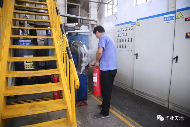 為了增強員工的安全消防意識,避免安全事故的發生,2018年6月份,山東華業無紡布有限公司的“安全生產活動月”計劃全面展開,在各車間各生產線都開展了消防安全演習活動,主要內容有:教練員培訓消防知識、消防器材使用說明、消防實操演習、安全總結等。